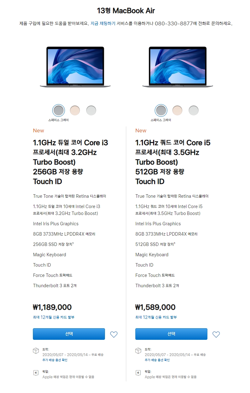 맥북을 구입해야하는 상황이었고, 맥북프로 13인치의 신제품이 곧 나온다는 소식을 들었으나, 맥북에어 2020의 성능과 가격이 모두 마음에 들어 지난 4월 구매를 하였습니다.